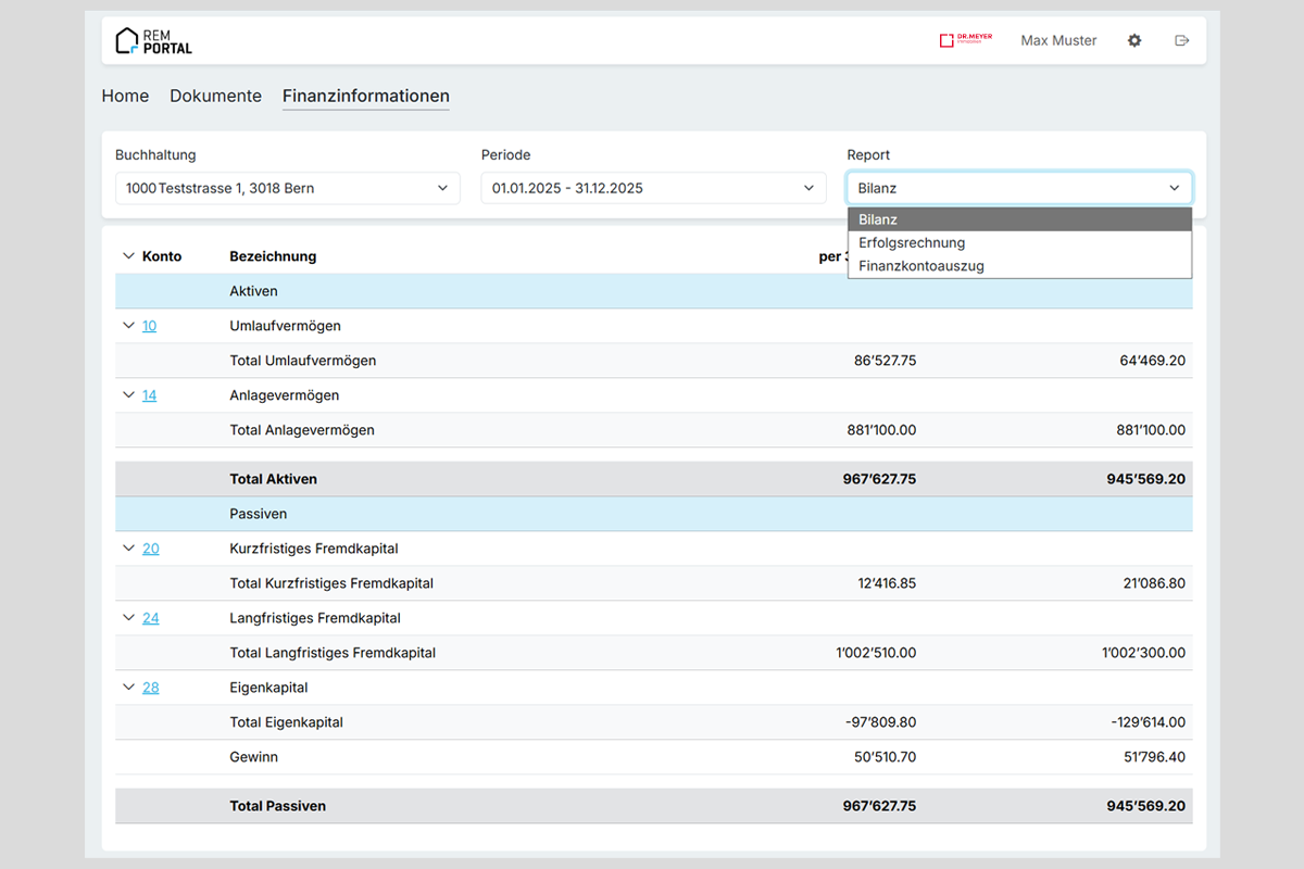 - Durch Auswahl des Reiters «Finanzinformationen» gelangen zur Finanzüberischt
