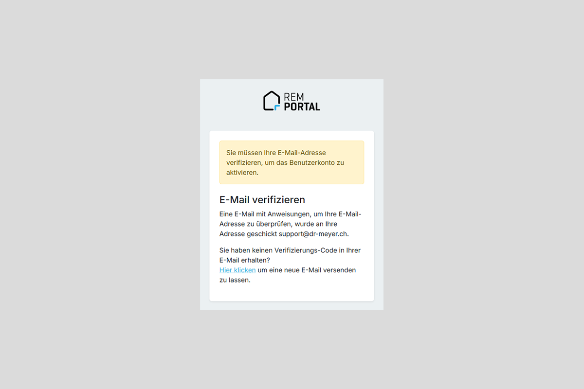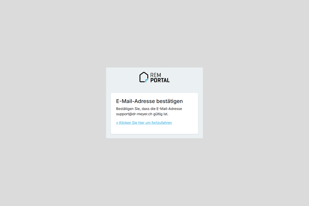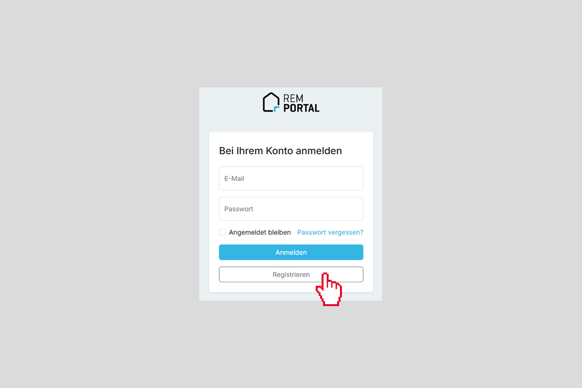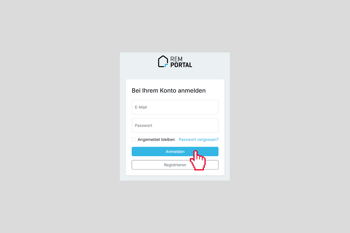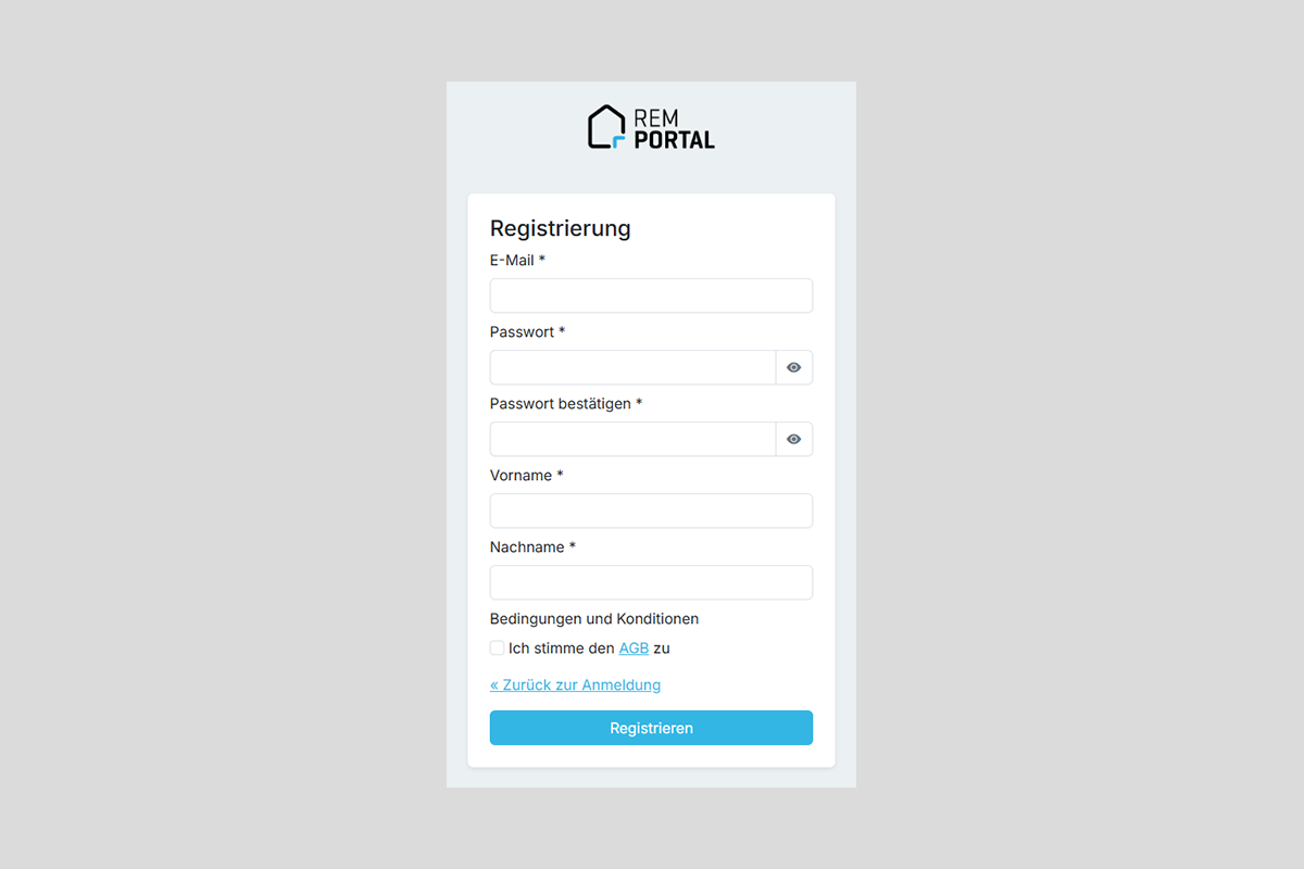 - Öffnen Sie das REM Portal mit dem Zugangslink, den Sie erhalten haben.