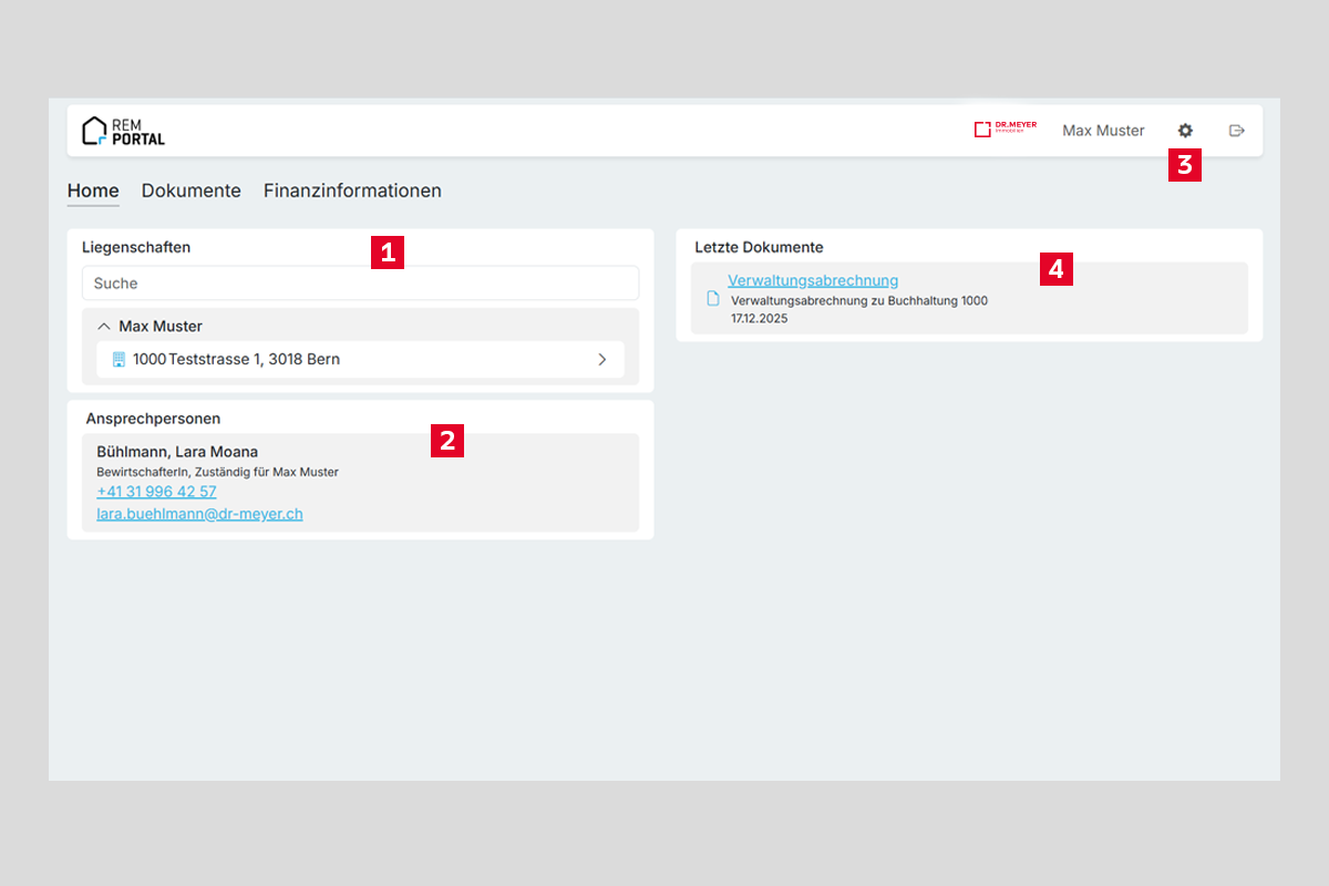 Das REM Portal bietet Ihnen als Eigentümerin und Eigentümer einen einfachen Zugang zu den wichtigsten Finanz- und Objektdaten. Hier finden Sie eine Übersicht aller wichtigen Funktionen.